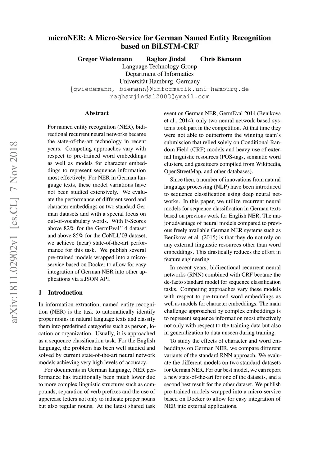 microNER: A Micro-Service for German Named Entity Recognition based on