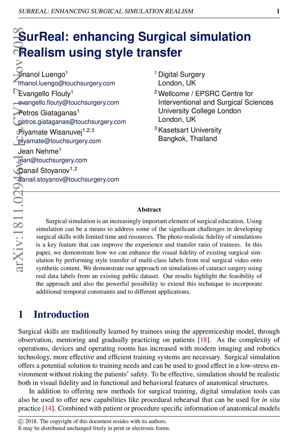 SurReal: enhancing Surgical simulation Realism using style transfer