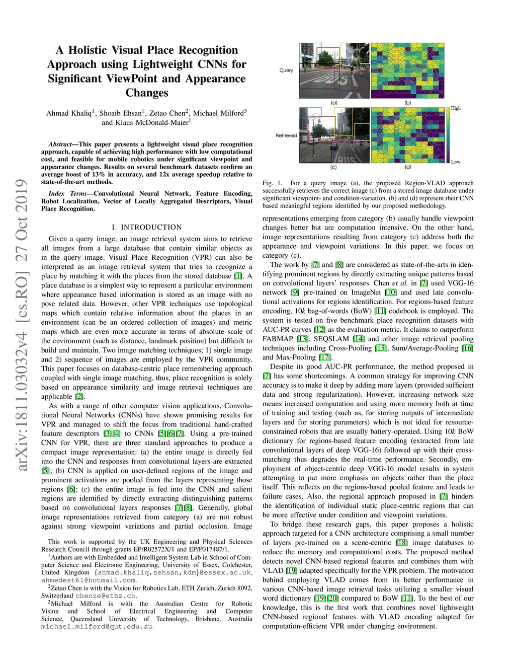A Holistic Visual Place Recognition Approach using Lightweight CNNs for