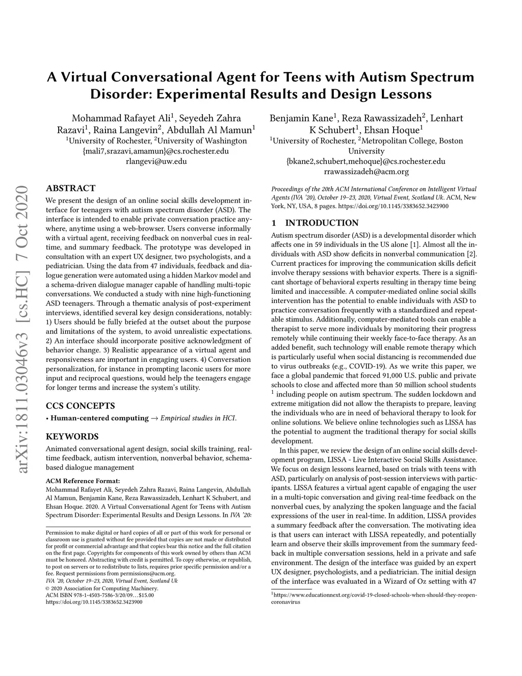 A Virtual Conversational Agent for Teens with Autism: Experimental