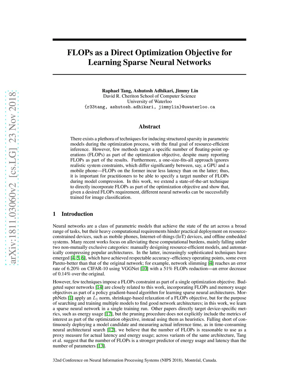 FLOPs as a Direct Optimization Objective for Learning Sparse Neural