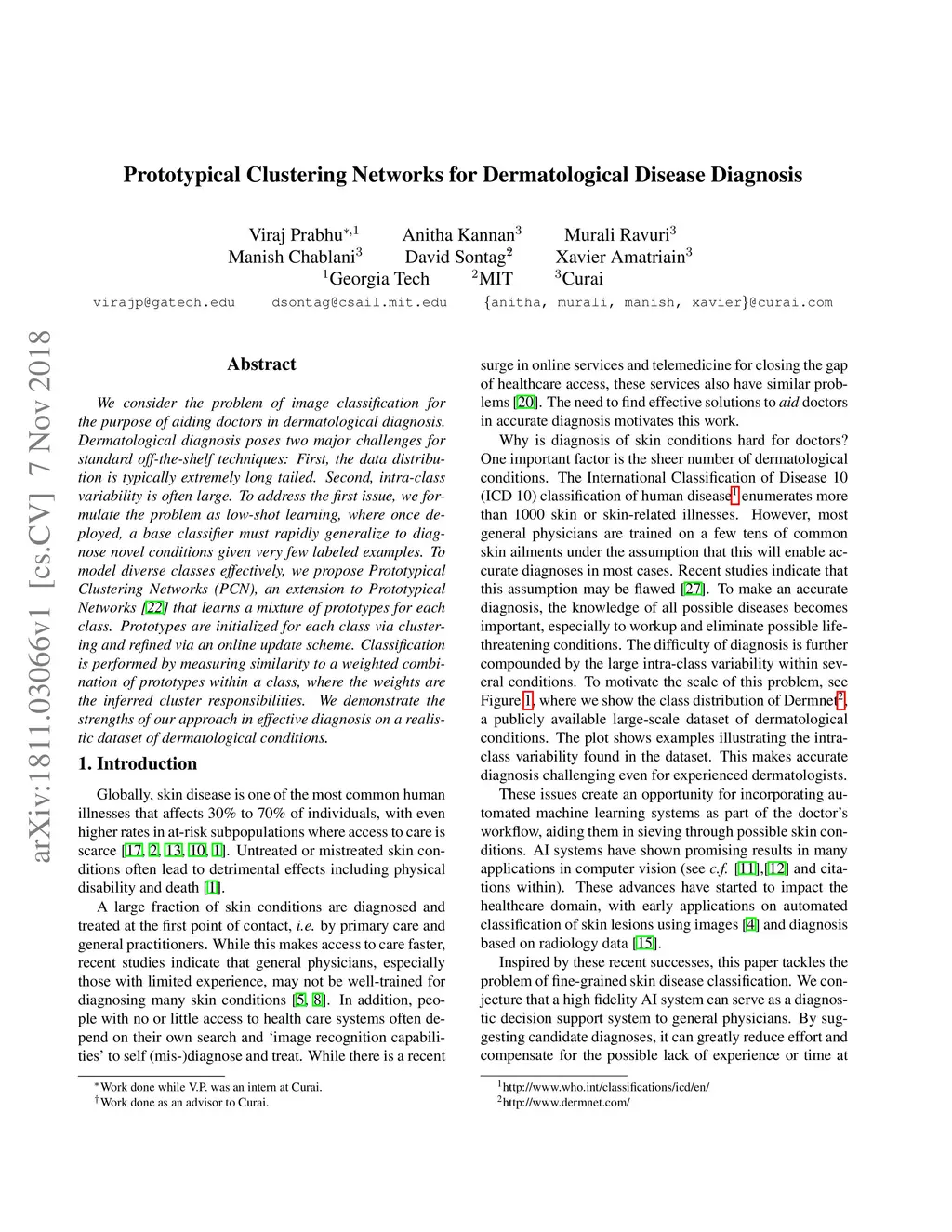 Prototypical Clustering Networks for Dermatological Disease Diagnosis