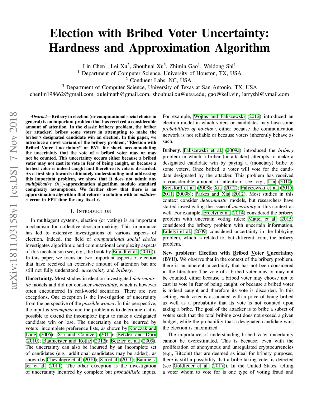 Bribery in election (or computational social choice in general) is an important problem that has received a considerable amount of attention. In the classic bribery problem, the briber (or attacker) bribes some voters in attempting to make the briber's designated candidate win an election. In this paper, we introduce a novel variant of the bribery problem, "Election with Bribed Voter Uncertainty" or BVU for short, accommodating the uncertainty that the vote of a bribed voter may or may not be counted. This uncertainty occurs either because a bribed voter may not cast its vote in fear of being caught, or because a bribed voter is indeed caught and therefore its vote is discarded. As a first step towards ultimately understanding and addressing this important problem, we show that it does not admit any multiplicative -approximation algorithm modulo standard complexity assumptions. We further show that there is an approximation algorithm that returns a solution with an additive- error in FPT time for any fixed .