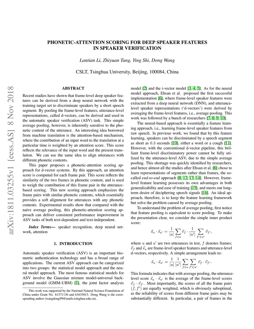 Phonetic-attention scoring for deep speaker features in speaker