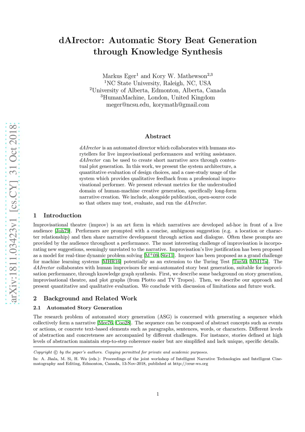 dAIrector is an automated director which collaborates with humans storytellers for live improvisational performances and writing assistance. dAIrector can be used to create short narrative arcs through contextual plot generation. In this work, we present the system architecture, a quantitative evaluation of design choices, and a case-study usage of the system which provides qualitative feedback from a professional improvisational performer. We present relevant metrics for the understudied domain of human-machine creative generation, specifically long-form narrative creation. We include, alongside publication, open-source code so that others may test, evaluate, and run the dAIrector.