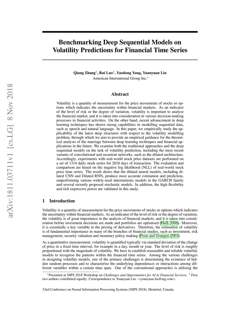 Volatility is a quantity of measurement for the price movements of stocks or options which indicates the uncertainty within financial markets. As an indicator of the level of risk or the degree of variation, volatility is important to analyse the financial market, and it is taken into consideration in various decision-making processes in financial activities. On the other hand, recent advancement in deep learning techniques has shown strong capabilities in modelling sequential data, such as speech and natural language. In this paper, we empirically study the applicability of the latest deep structures with respect to the volatility modelling problem, through which we aim to provide an empirical guidance for the theoretical analysis of the marriage between deep learning techniques and financial applications in the future. We examine both the traditional approaches and the deep sequential models on the task of volatility prediction, including the most recent variants of convolutional and recurrent networks, such as the dilated architecture. Accordingly, experiments with real-world stock price datasets are performed on a set of 1314 daily stock series for 2018 days of transaction. The evaluation and comparison are based on the negative log likelihood (NLL) of real-world stock price time series. The result shows that the dilated neural models, including dilated CNN and Dilated RNN, produce most accurate estimation and prediction, outperforming various widely-used deterministic models in the GARCH family and several recently proposed stochastic models. In addition, the high flexibility and rich expressive power are validated in this study.