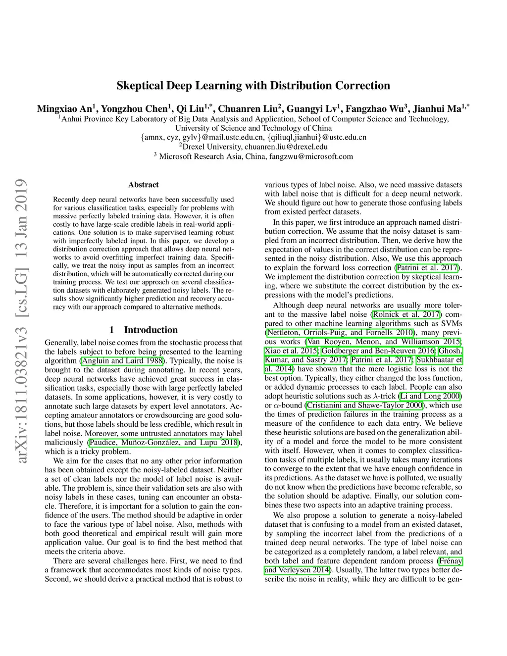 Recently deep neural networks have been successfully used for various classification tasks, especially for problems with massive perfectly labeled training data. However, it is often costly to have large-scale credible labels in real-world applications. One solution is to make supervised learning robust with imperfectly labeled input. In this paper, we develop a distribution correction approach that allows deep neural networks to avoid overfitting imperfect training data. Specifically, we treat the noisy input as samples from an incorrect distribution, which will be automatically corrected during our training process. We test our approach on several classification datasets with elaborately generated noisy labels. The results show significantly higher prediction and recovery accuracy with our approach compared to alternative methods.