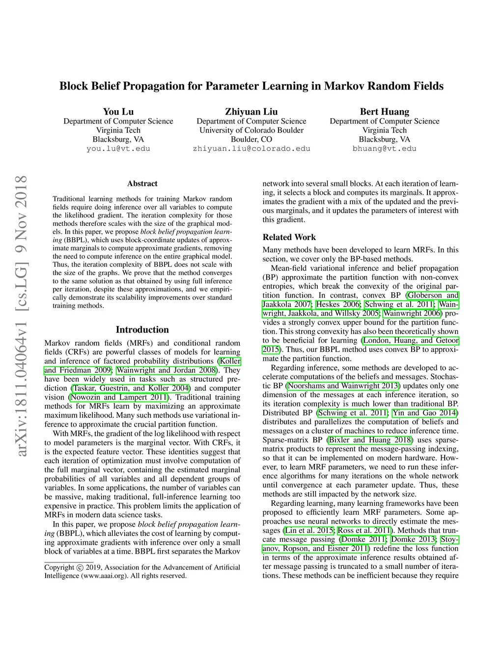 Block Belief Propagation for Parameter Learning in Markov Random Fields