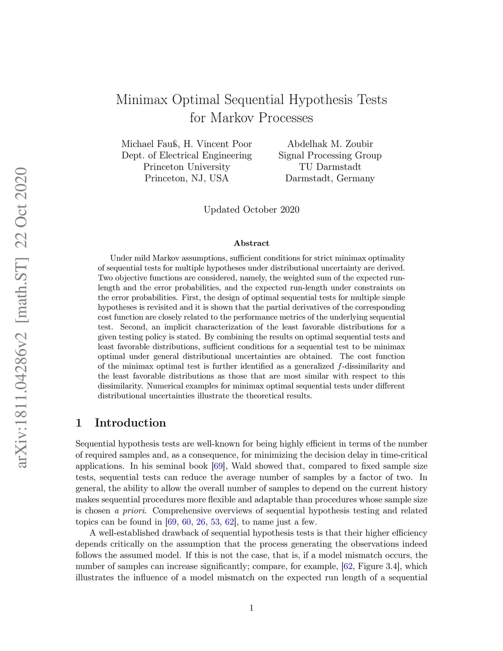 Minimax Optimal Sequential Hypothesis Tests for Markov Processes