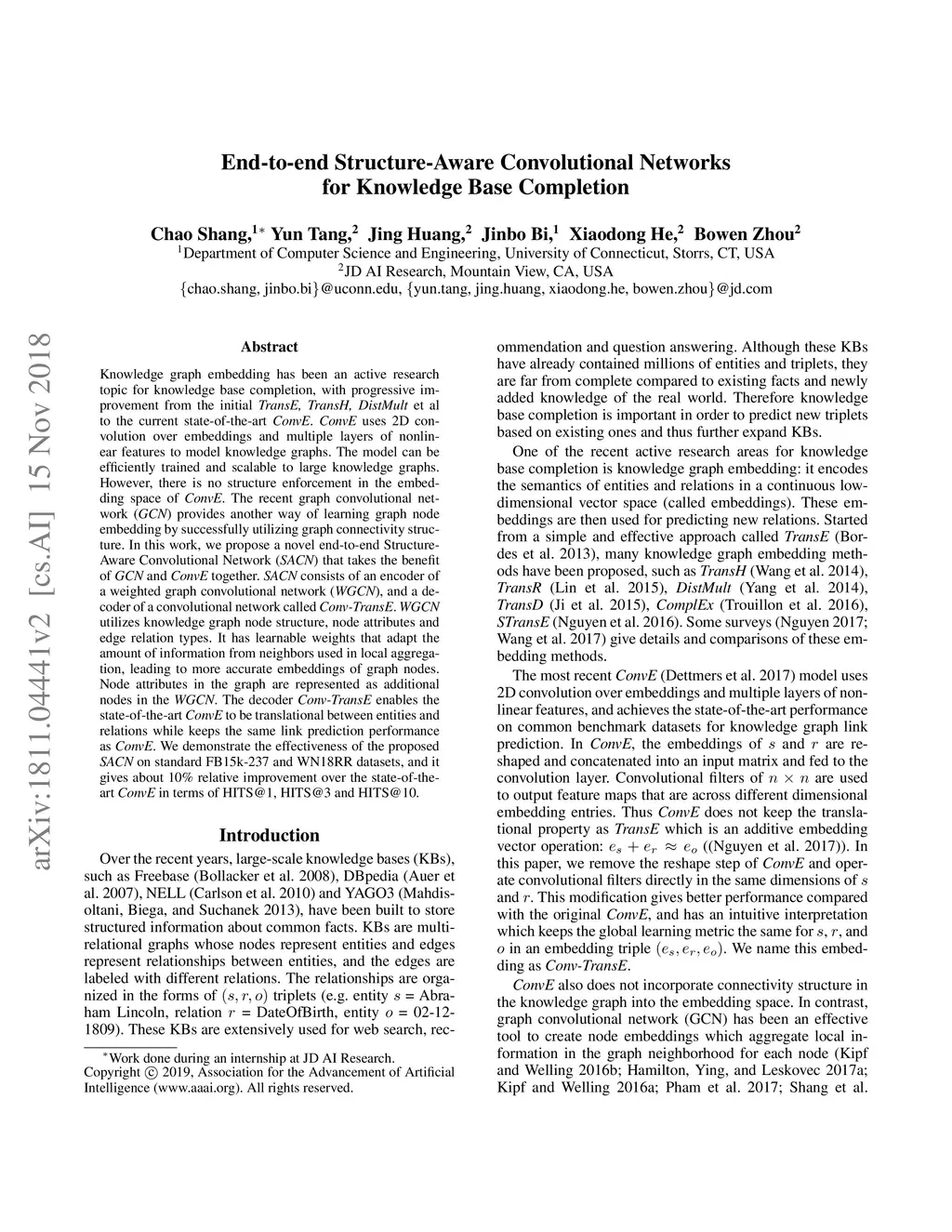 End-to-end Structure-Aware Convolutional Networks for Knowledge Base