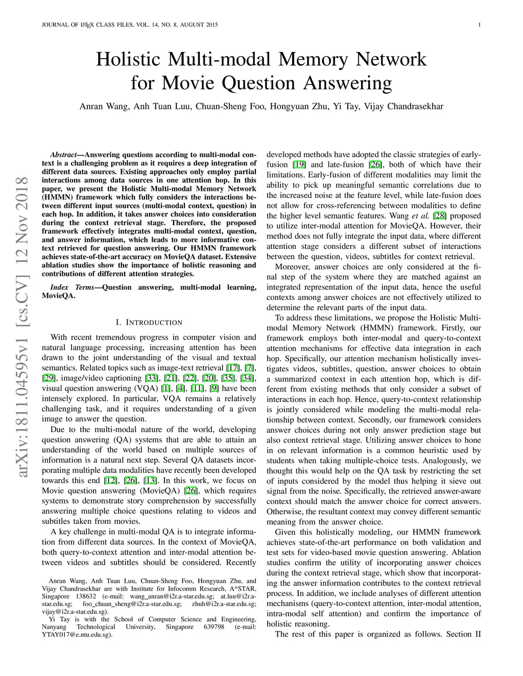 Holistic Multi-modal Memory Network for Movie Question Answering