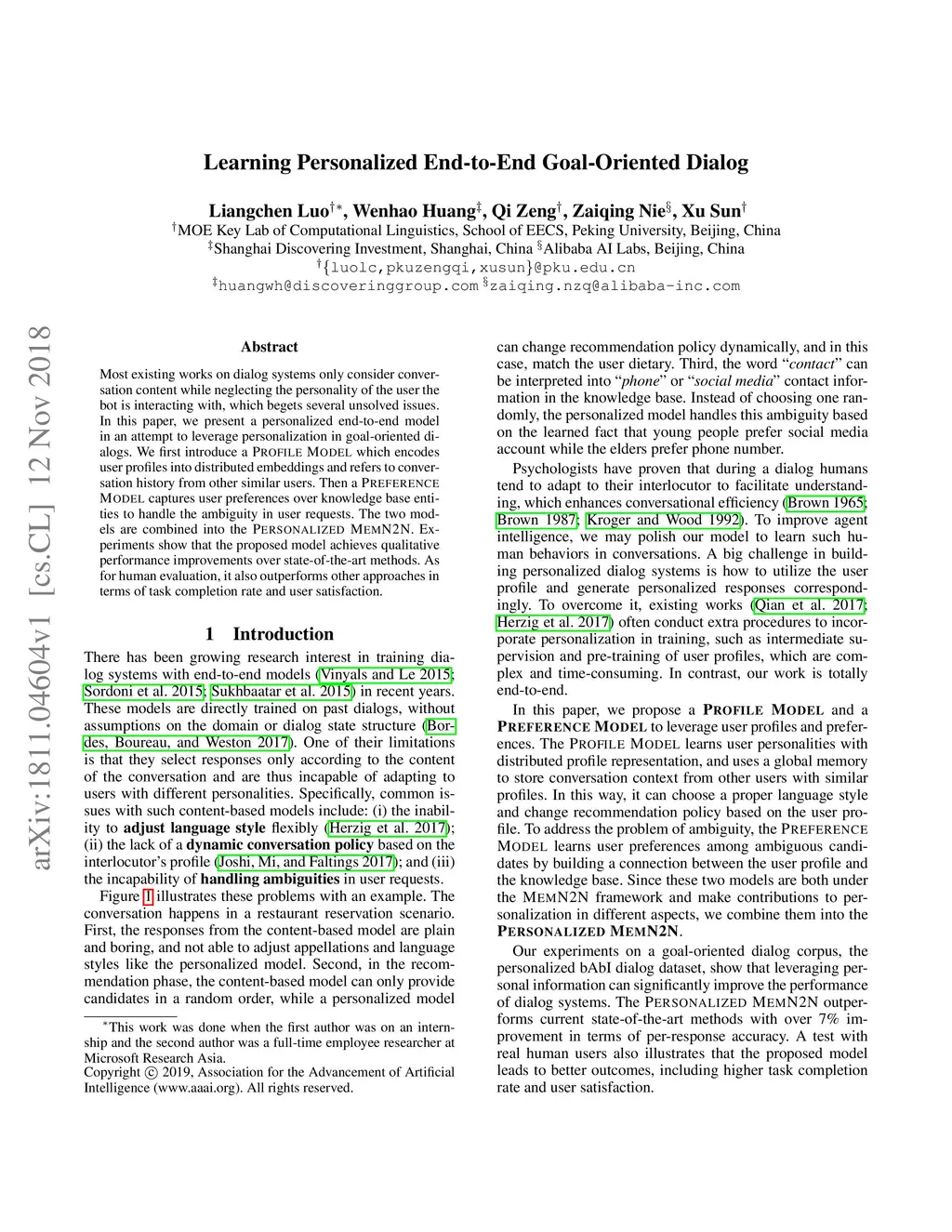 Learning Personalized End-to-End Goal-Oriented Dialog