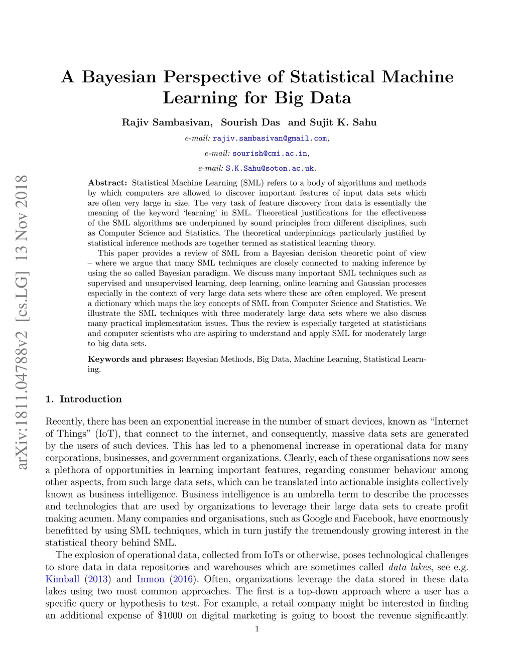 A Bayesian Perspective of Statistical Machine Learning for Big Data