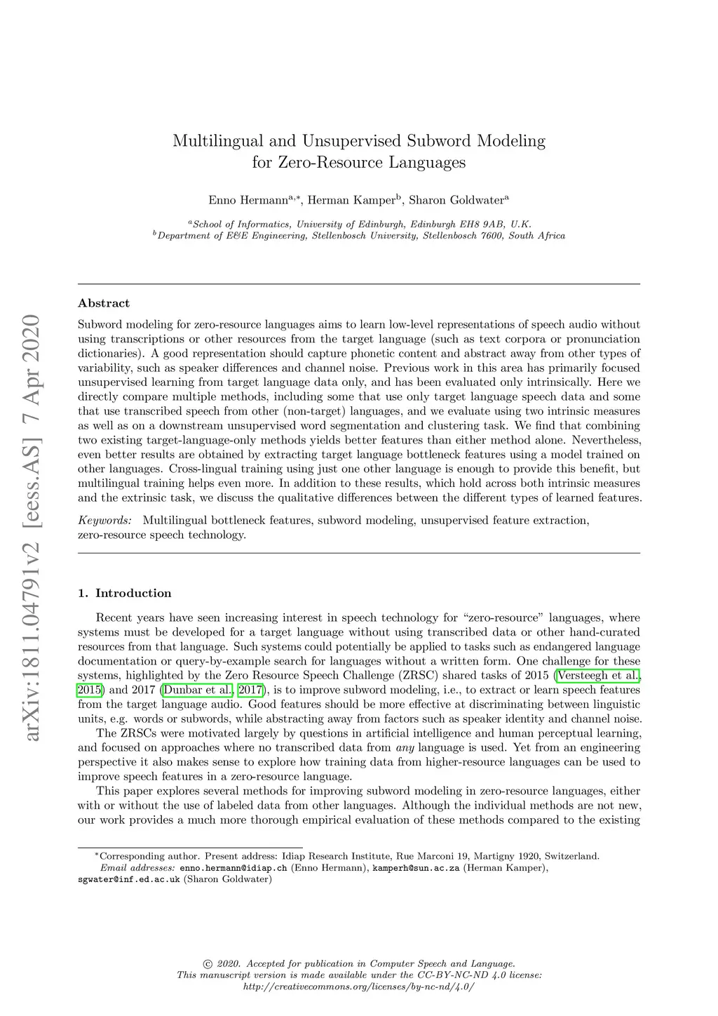 Multilingual and Unsupervised Subword Modeling for Zero-Resource