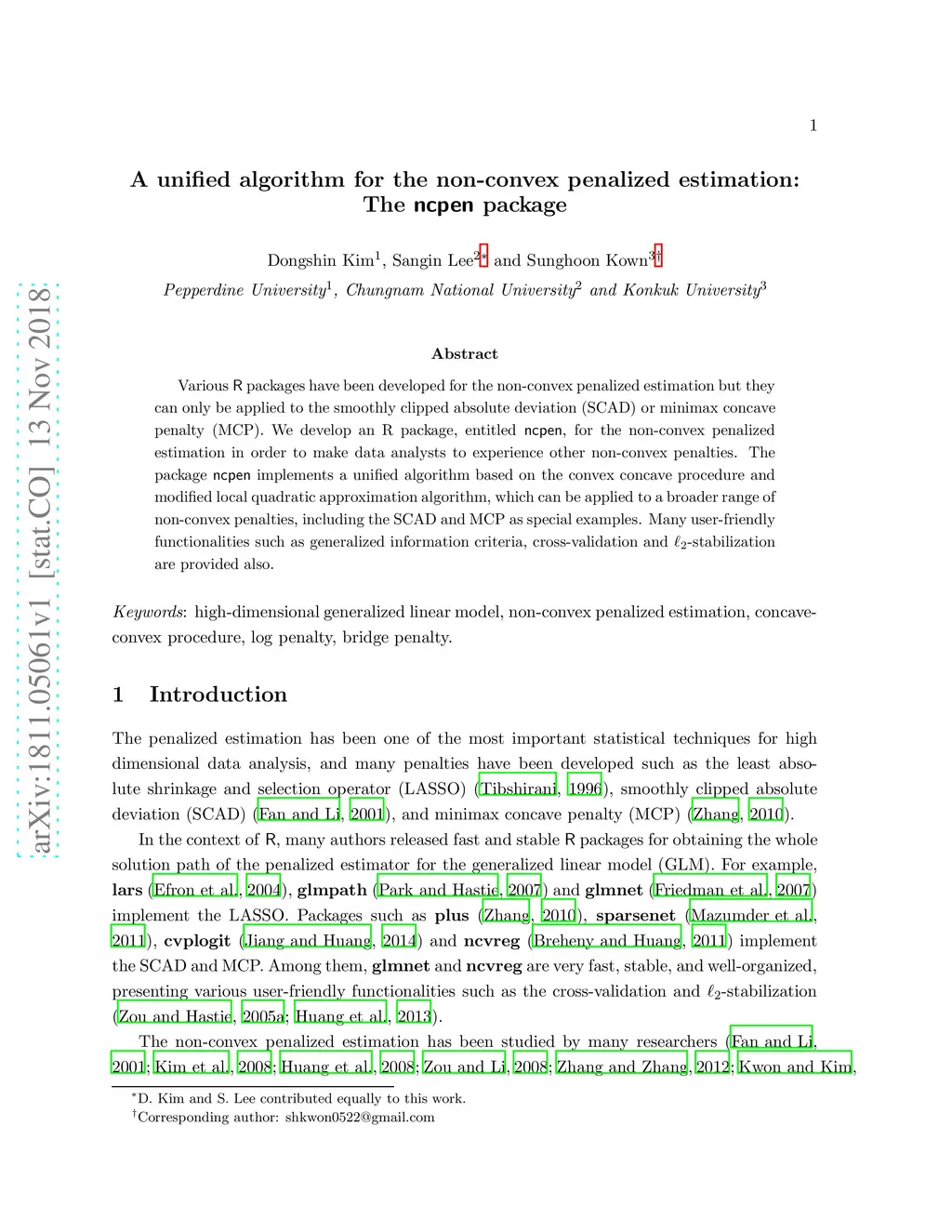 Various R packages have been developed for the non-convex penalized estimation but they can only be applied to the smoothly clipped absolute deviation (SCAD) or minimax concave penalty (MCP). We develop an R package, entitled ncpen, for the non-convex penalized estimation in order to make data analysts to experience other non-convex penalties. The package ncpen implements a unified algorithm based on the convex concave procedure and modified local quadratic approximation algorithm, which can be applied to a broader range of non-convex penalties, including the SCAD and MCP as special examples. Many user-friendly functionalities such as generalized information criteria, cross-validation and L2-stabilization are provided also.