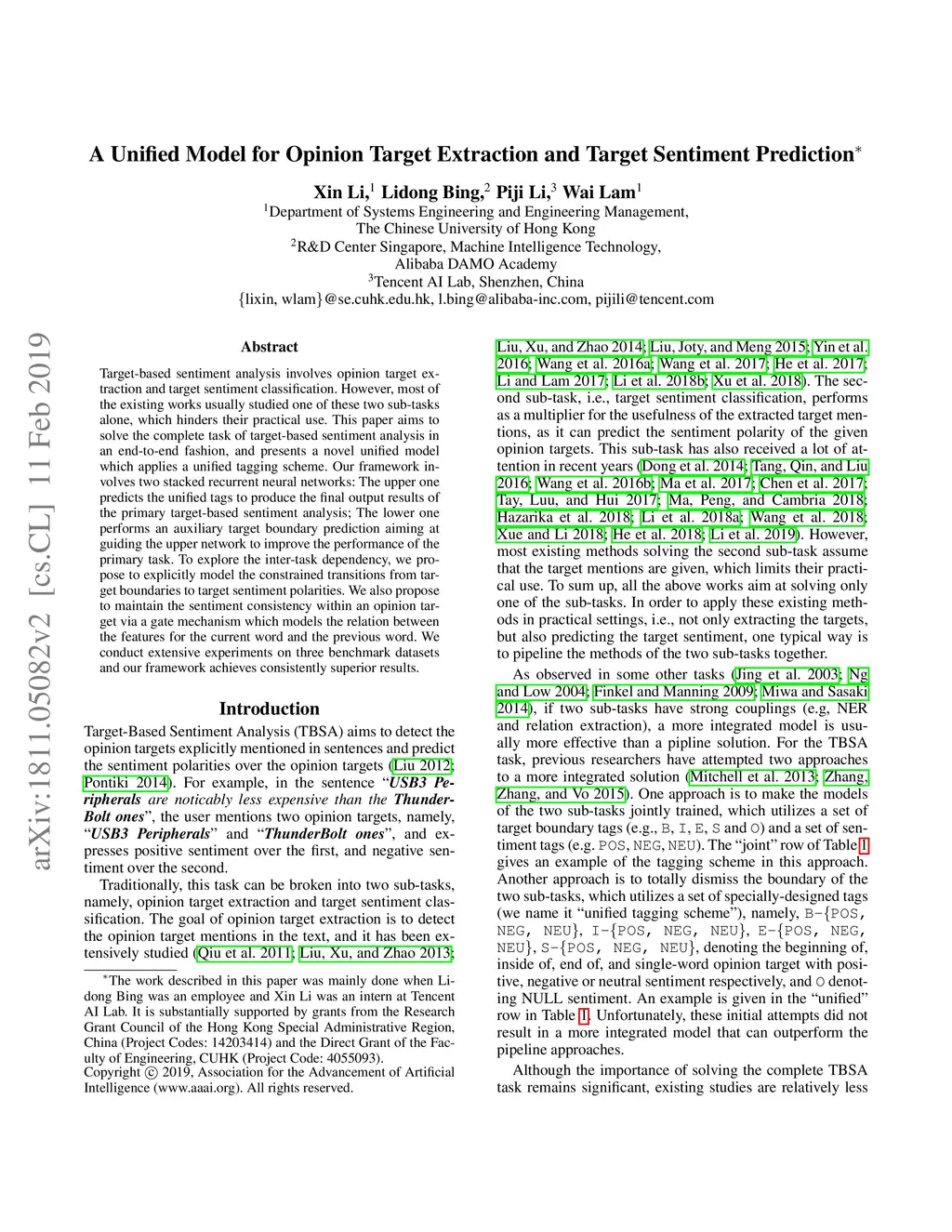 A Unified Model for Opinion Target Extraction and Target Sentiment