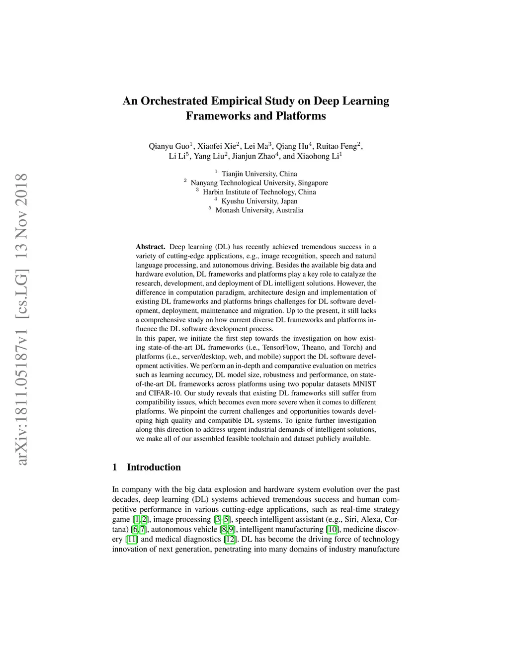 An Orchestrated Empirical Study on Deep Learning Frameworks and