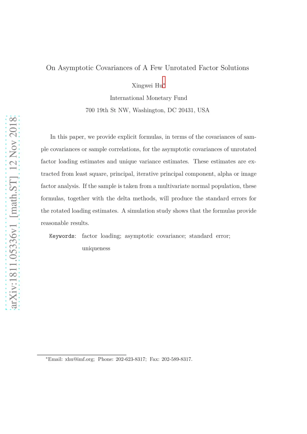 On Asymptotic Covariances of A Few Unrotated Factor Solutions
