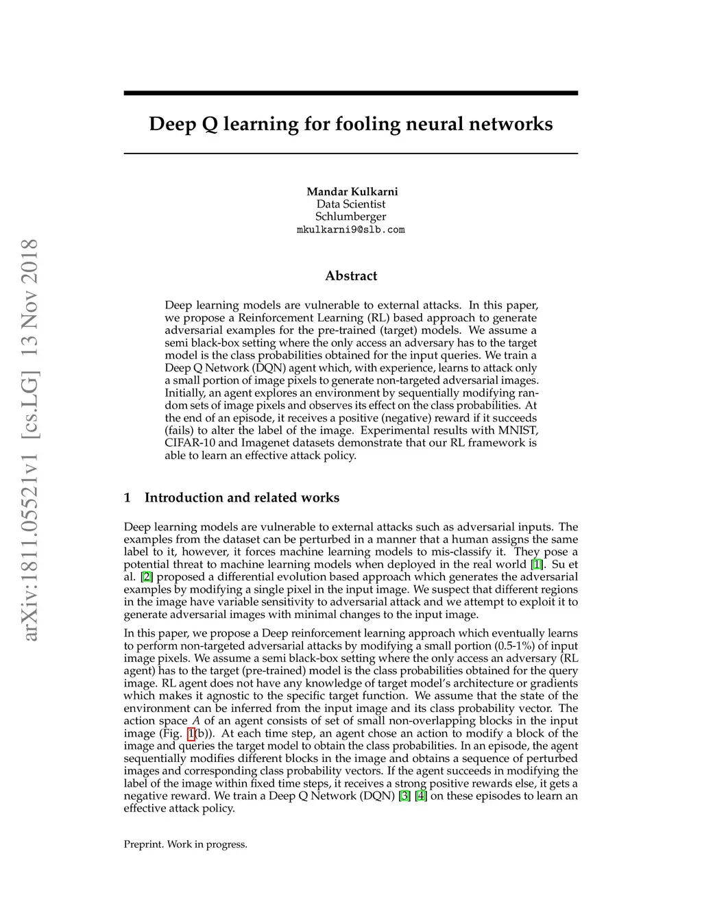 Deep Q learning for fooling neural networks