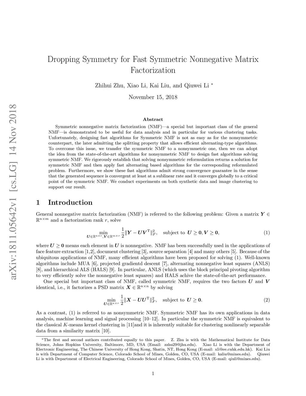 Dropping Symmetry for Fast Symmetric Nonnegative Matrix Factorization