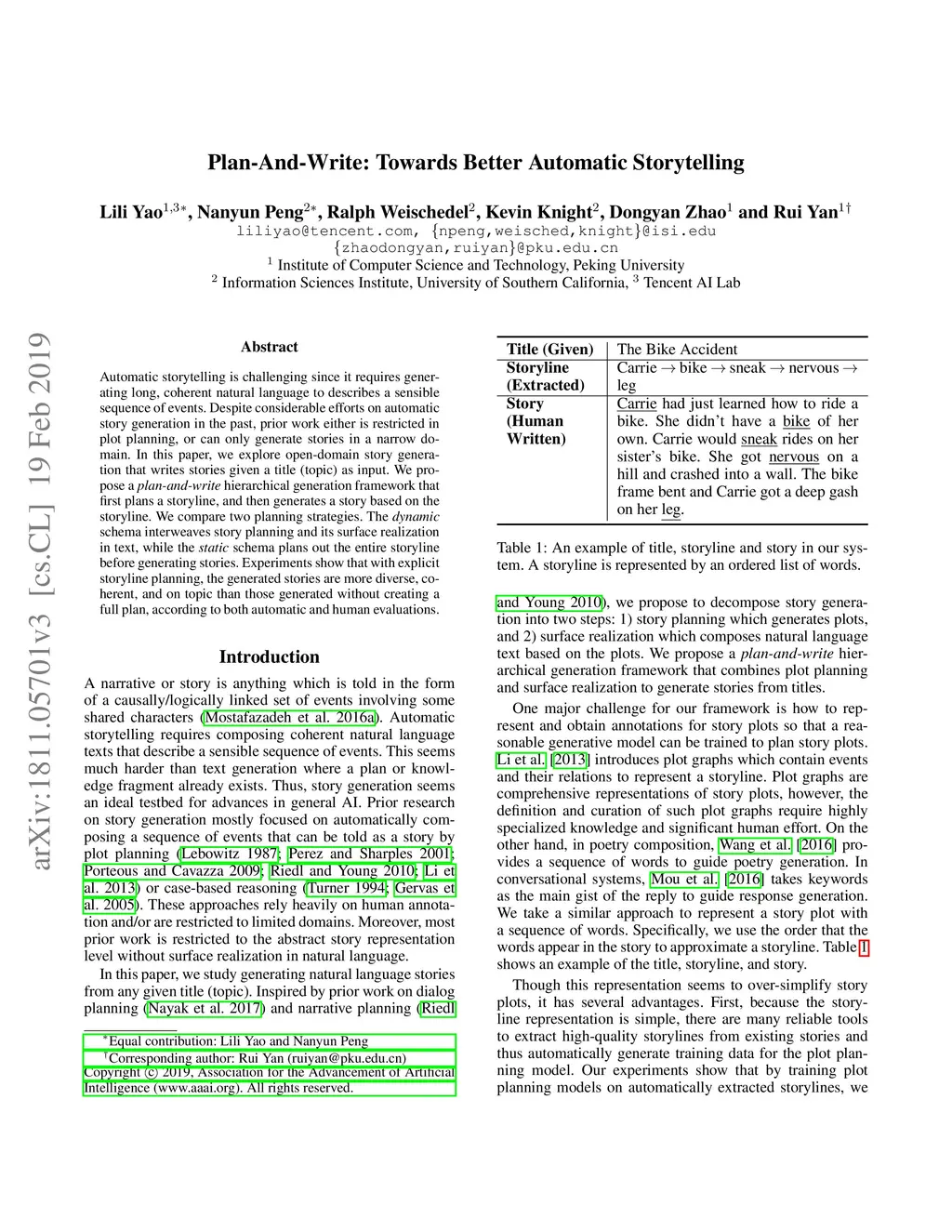 Plan-And-Write: Towards Better Automatic Storytelling