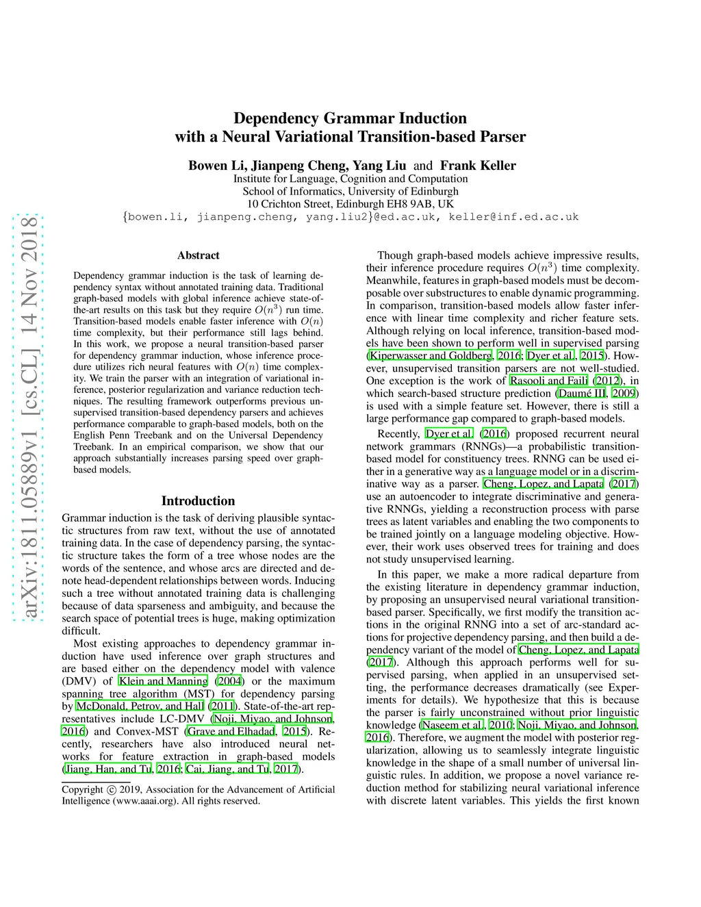 Dependency Grammar Induction with a Neural Variational Transition-based