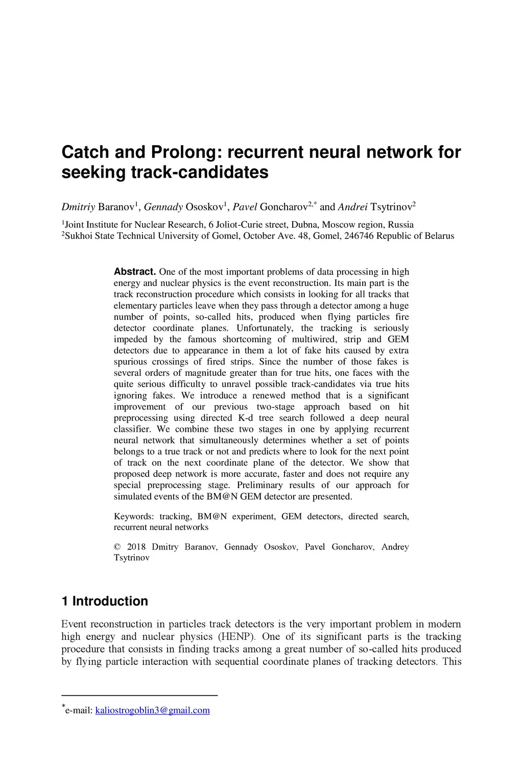 Catch and Prolong: recurrent neural network for seeking track-candidates