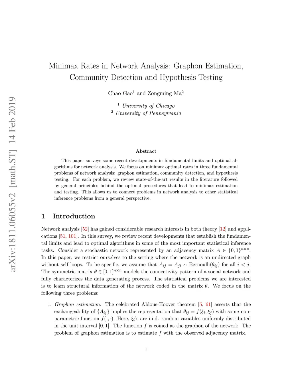 This paper surveys some recent developments in fundamental limits and optimal algorithms for network analysis. We focus on minimax optimal rates in three fundamental problems of network analysis: graphon estimation, community detection, and hypothesis testing. For each problem, we review state-of-the-art results in the literature followed by general principles behind the optimal procedures that lead to minimax estimation and testing. This allows us to connect problems in network analysis to other statistical inference problems from a general perspective.