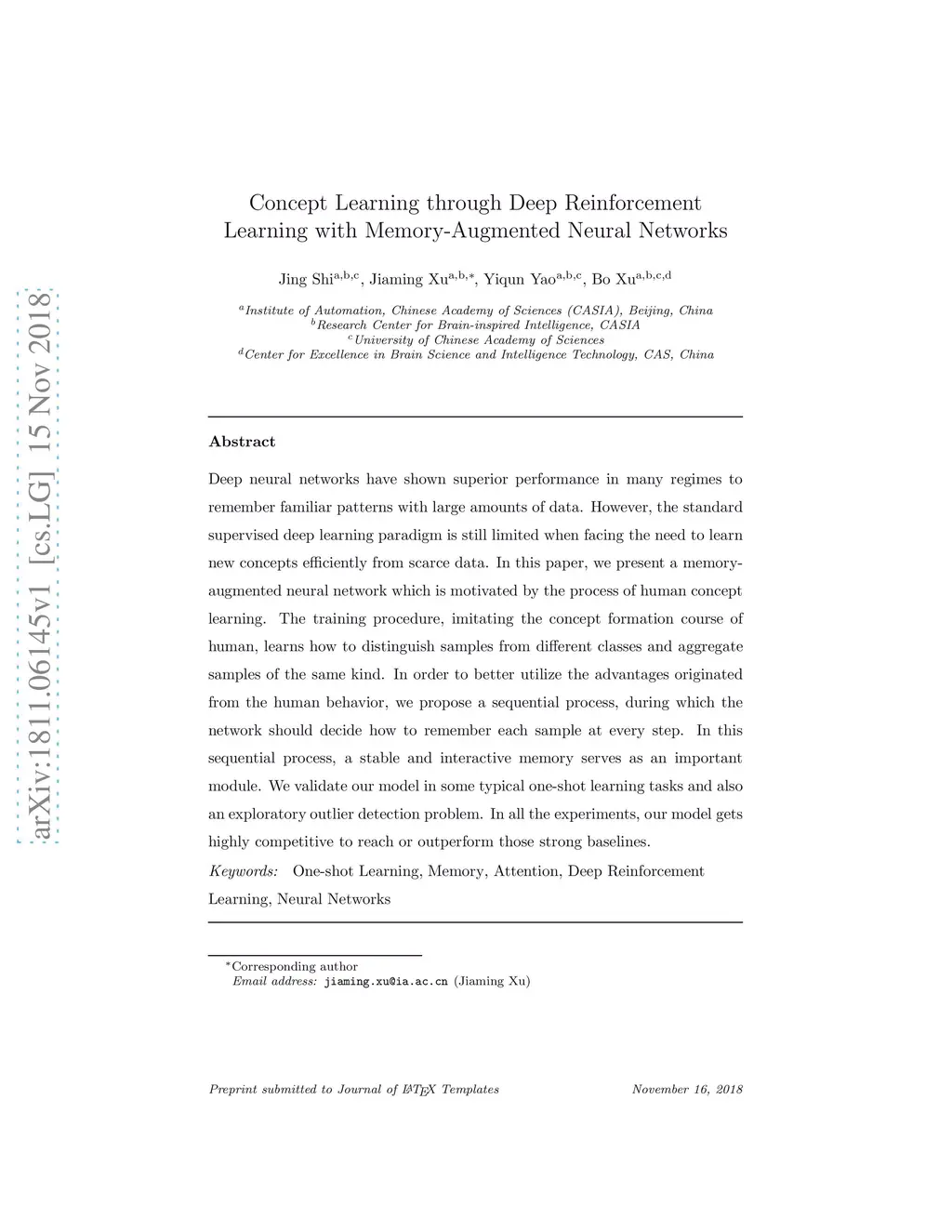 Deep neural networks have shown superior performance in many regimes to remember familiar patterns with large amounts of data. However, the standard supervised deep learning paradigm is still limited when facing the need to learn new concepts efficiently from scarce data. In this paper, we present a memory-augmented neural network which is motivated by the process of human concept learning. The training procedure, imitating the concept formation course of human, learns how to distinguish samples from different classes and aggregate samples of the same kind. In order to better utilize the advantages originated from the human behavior, we propose a sequential process, during which the network should decide how to remember each sample at every step. In this sequential process, a stable and interactive memory serves as an important module. We validate our model in some typical one-shot learning tasks and also an exploratory outlier detection problem. In all the experiments, our model gets highly competitive to reach or outperform those strong baselines.