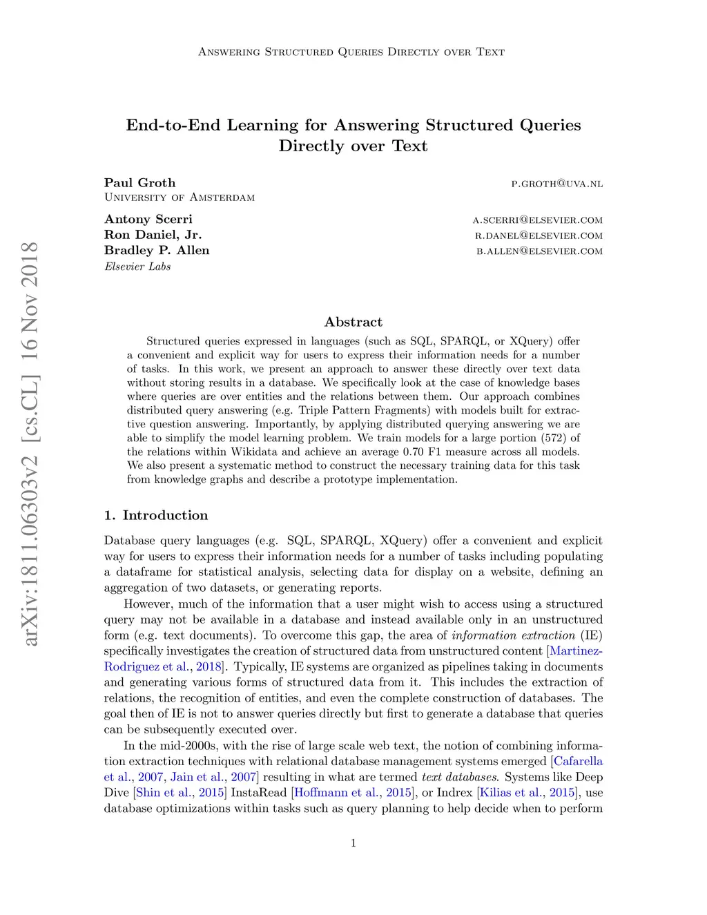 End-to-End Learning for Answering Structured Queries Directly over Text