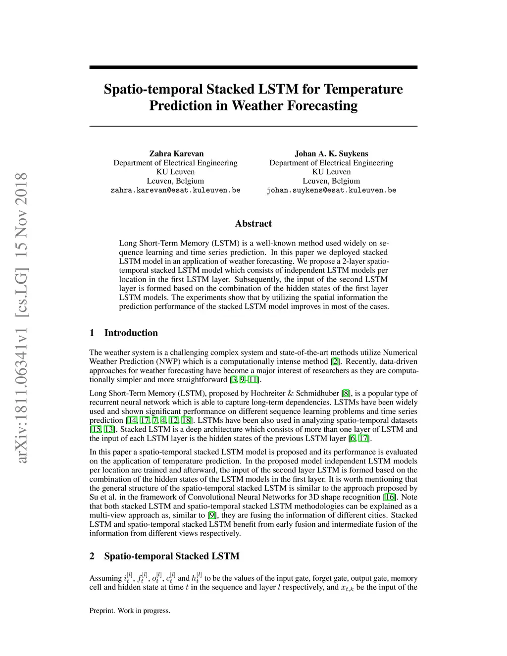 Spatio-temporal Stacked LSTM for Temperature Prediction in Weather