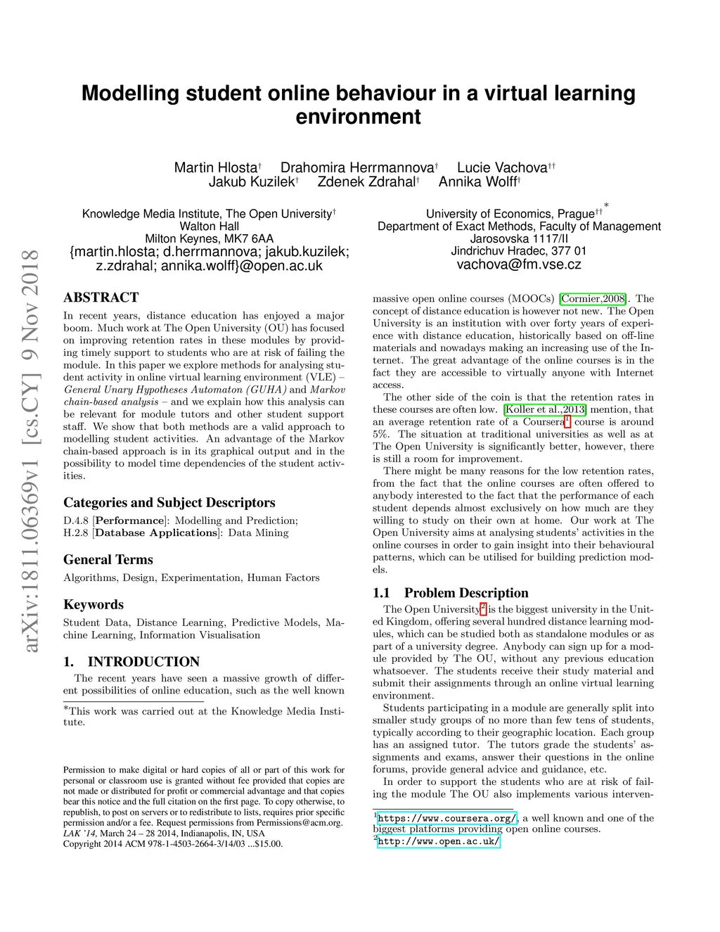 In recent years, distance education has enjoyed a major boom. Much work at The Open University (OU) has focused on improving retention rates in these modules by providing timely support to students who are at risk of failing the module. In this paper we explore methods for analysing student activity in online virtual learning environment (VLE) -- General Unary Hypotheses Automaton (GUHA) and Markov chain-based analysis -- and we explain how this analysis can be relevant for module tutors and other student support staff. We show that both methods are a valid approach to modelling student activities. An advantage of the Markov chain-based approach is in its graphical output and in the possibility to model time dependencies of the student activities.