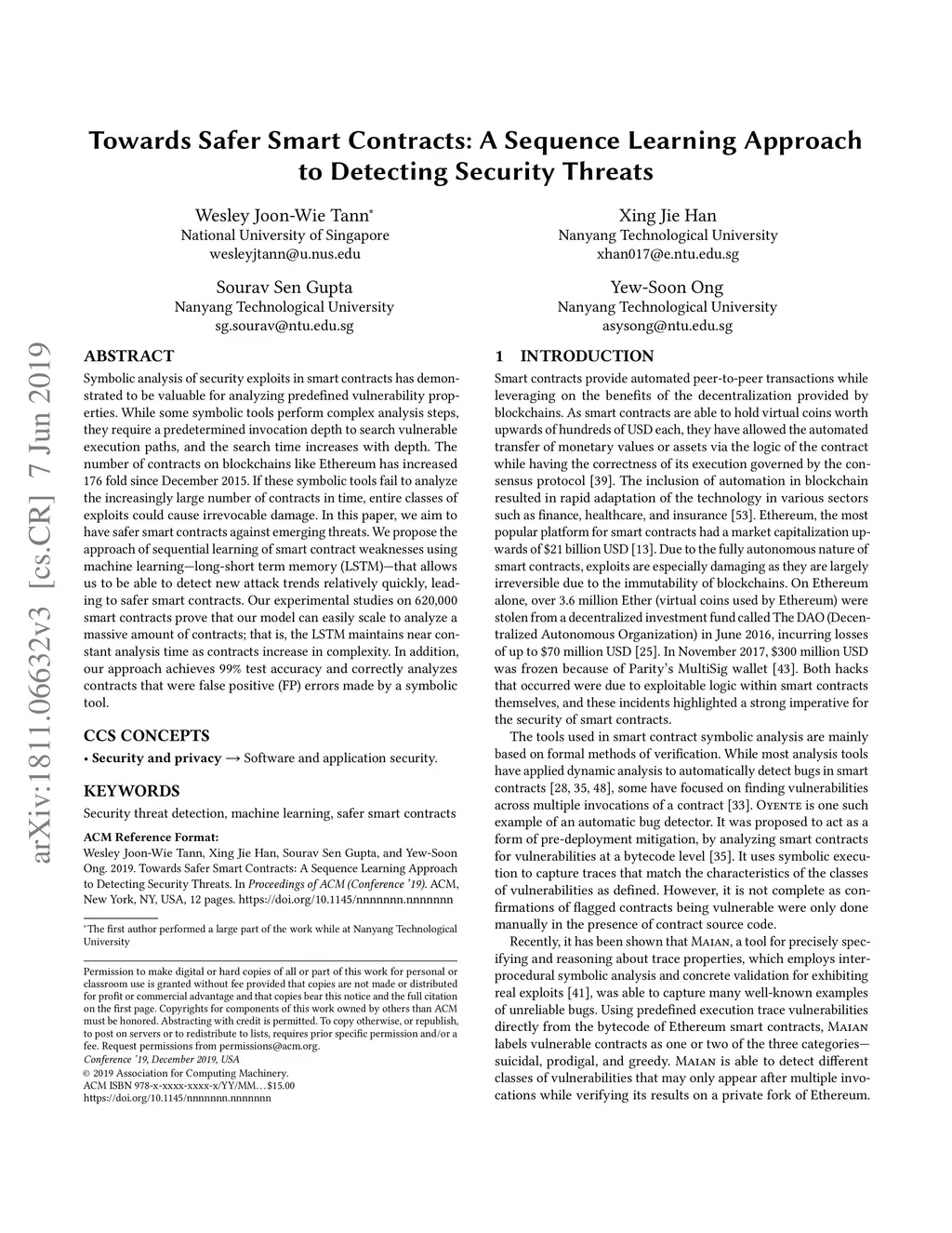 Towards Safer Smart Contracts: A Sequence Learning Approach to Detecting