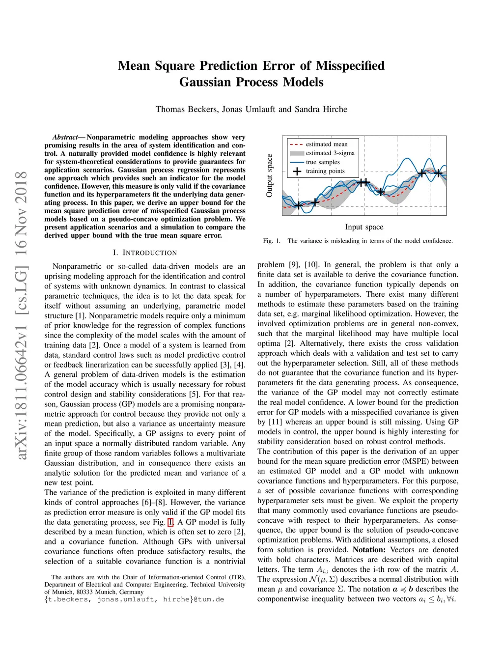 Nonparametric modeling approaches show very promising results in the area of system identification and control. A naturally provided model confidence is highly relevant for system-theoretical considerations to provide guarantees for application scenarios. Gaussian process regression represents one approach which provides such an indicator for the model confidence. However, this measure is only valid if the covariance function and its hyperparameters fit the underlying data generating process. In this paper, we derive an upper bound for the mean square prediction error of misspecified Gaussian process models based on a pseudo-concave optimization problem. We present application scenarios and a simulation to compare the derived upper bound with the true mean square error.