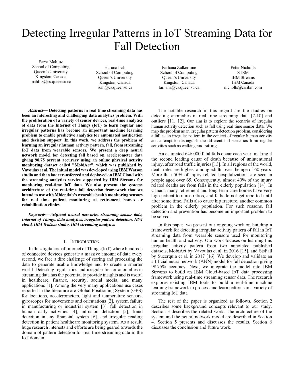 Detecting Irregular Patterns in IoT Streaming Data for Fall Detection