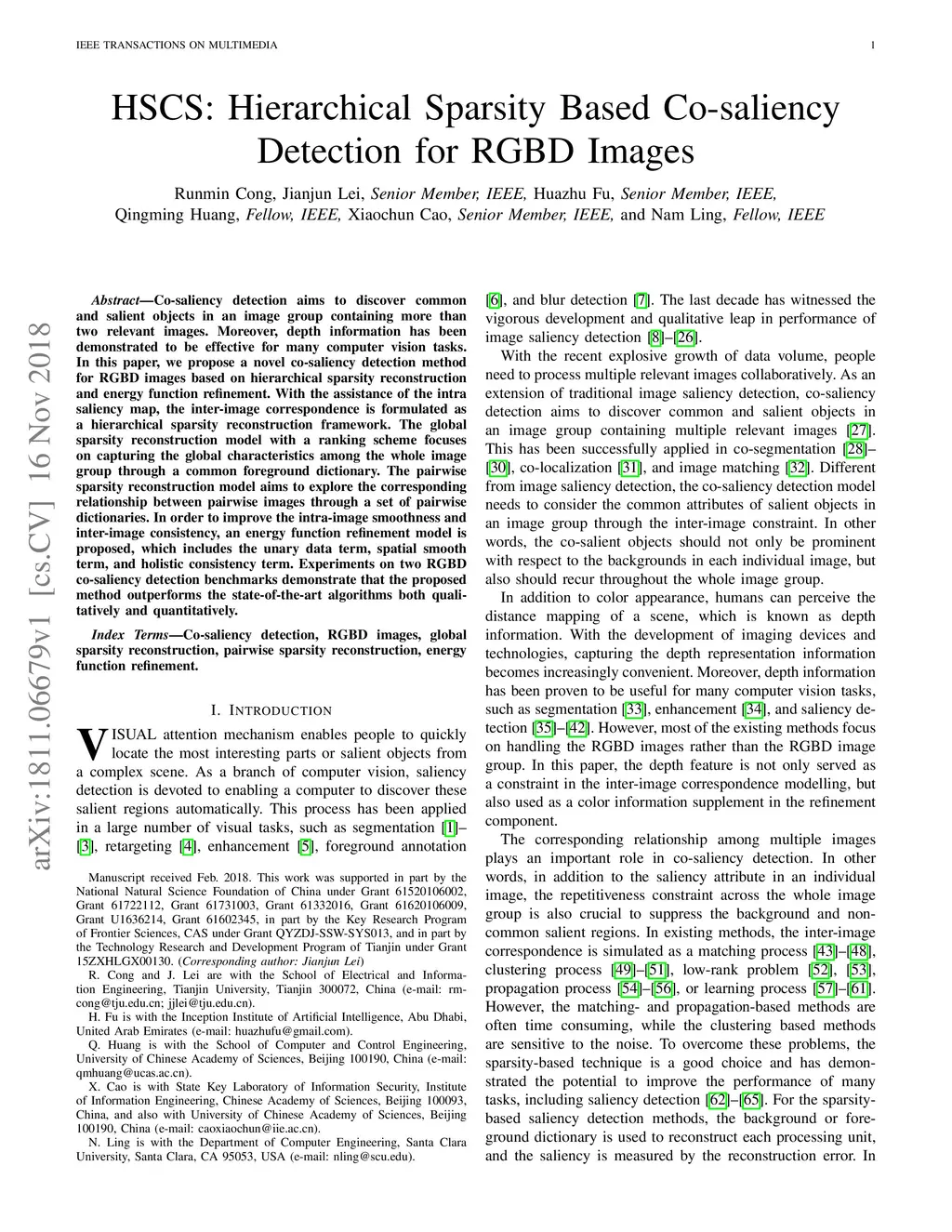 HSCS: Hierarchical Sparsity Based Co-saliency Detection for RGBD Images