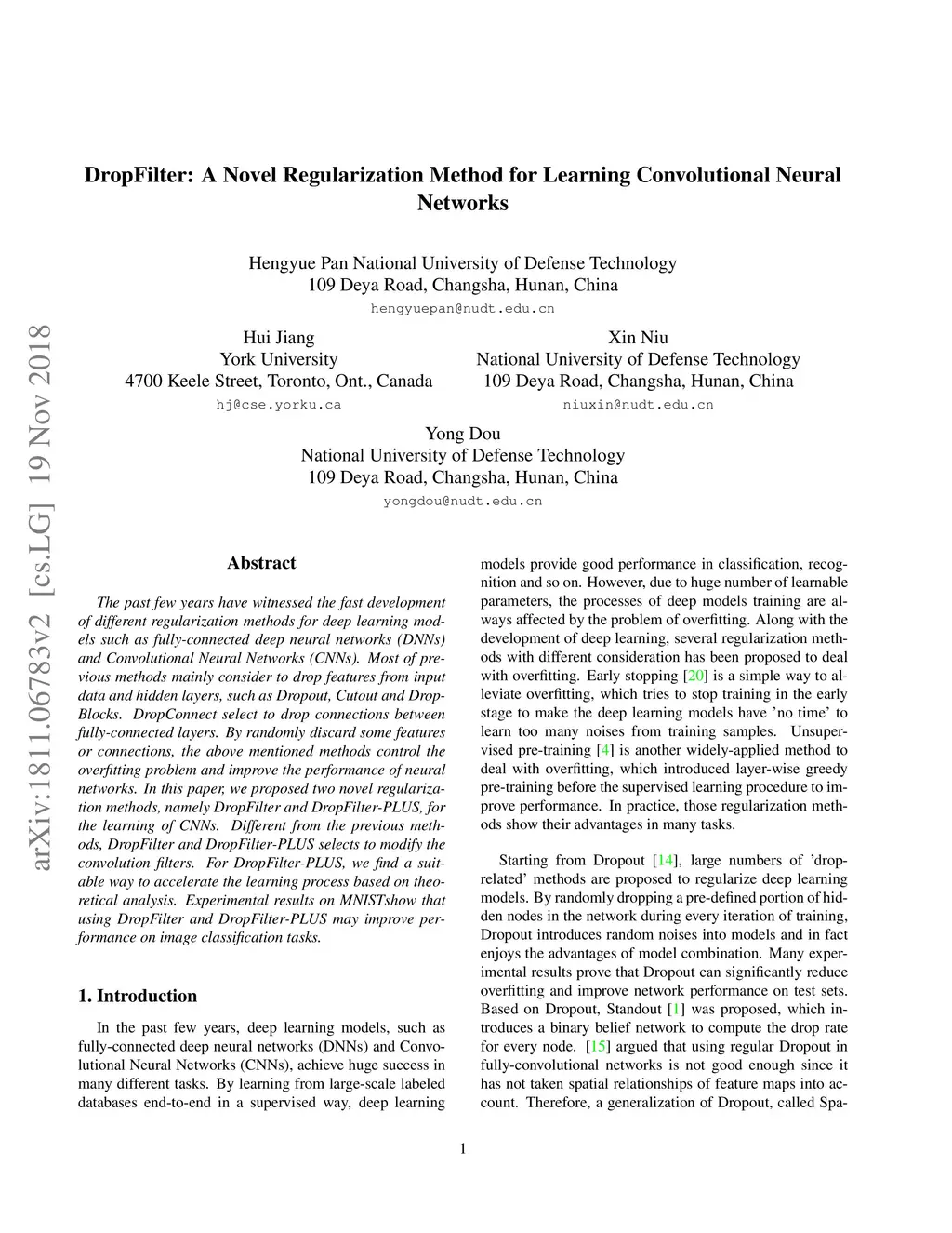 DropFilter: A Novel Regularization Method for Learning Convolutional