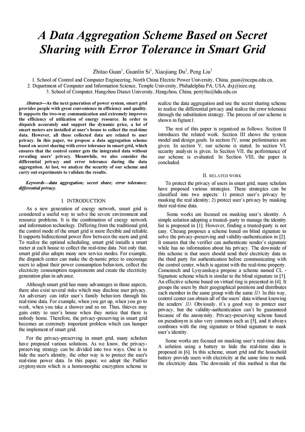 In smart grid, large quantities of data is collected from various applications, such as smart metering substation state monitoring, electric energy data acquisition, and smart home. Big data acquired in smart grid applications usually is sensitive. For instance, in order to dispatch accurately and support the dynamic price, lots of smart meters are installed at user's house to collect the real-time data, but all these collected data are related to user privacy. In this paper, we propose a data aggregation scheme based on secret sharing with error tolerance in smart grid, which ensures that the control center gets the integrated data without revealing users' privacy. Meanwhile, we also consider the differential privacy and error tolerance during the data aggregation. At last, we analyze the security of our scheme and carry out experiments to validate the results.
