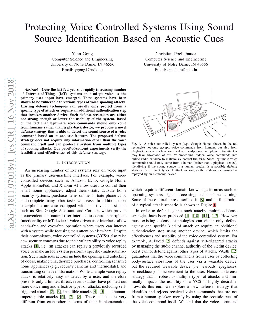 Protecting Voice Controlled Systems Using Sound Source Identification