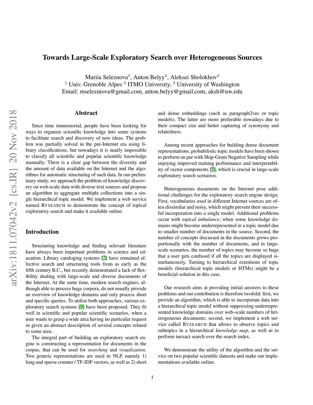 Towards Large-Scale Exploratory Search over Heterogeneous Sources
