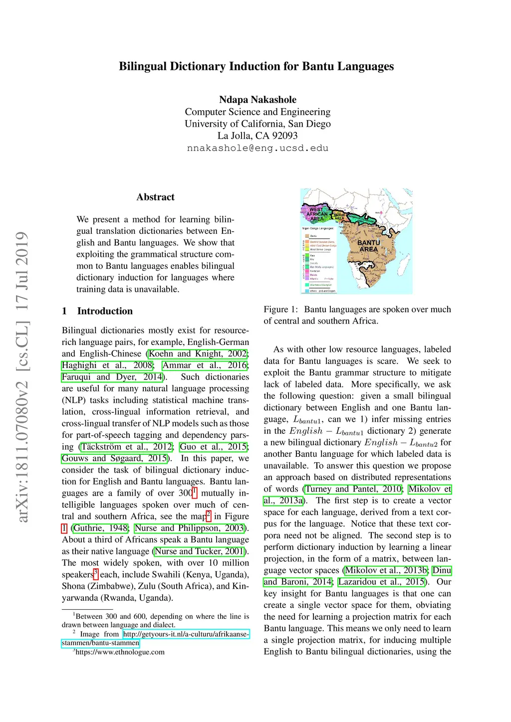 We present a method for learning bilingual translation dictionaries between English and Bantu languages. We show that exploiting the grammatical structure common to Bantu languages enables bilingual dictionary induction for languages where training data is unavailable.