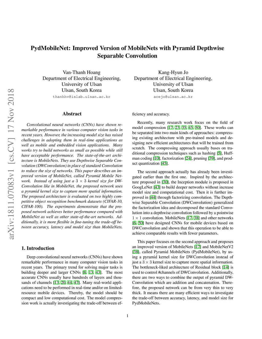 PydMobileNet: Improved Version of MobileNets with Pyramid Depthwise