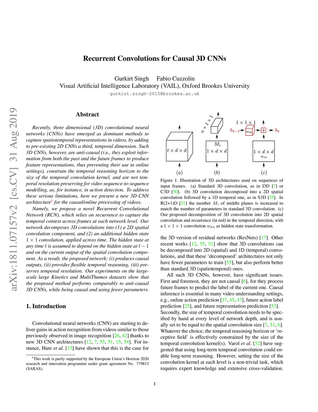 Recurrent Convolutions for Causal 3D CNNs