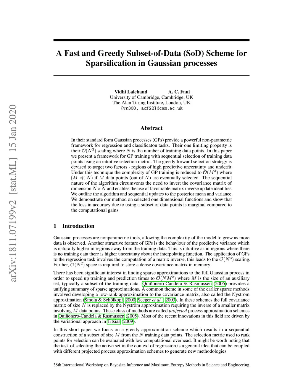 A Fast and Greedy Subset-of-Data (SoD) Scheme for Sparsification in