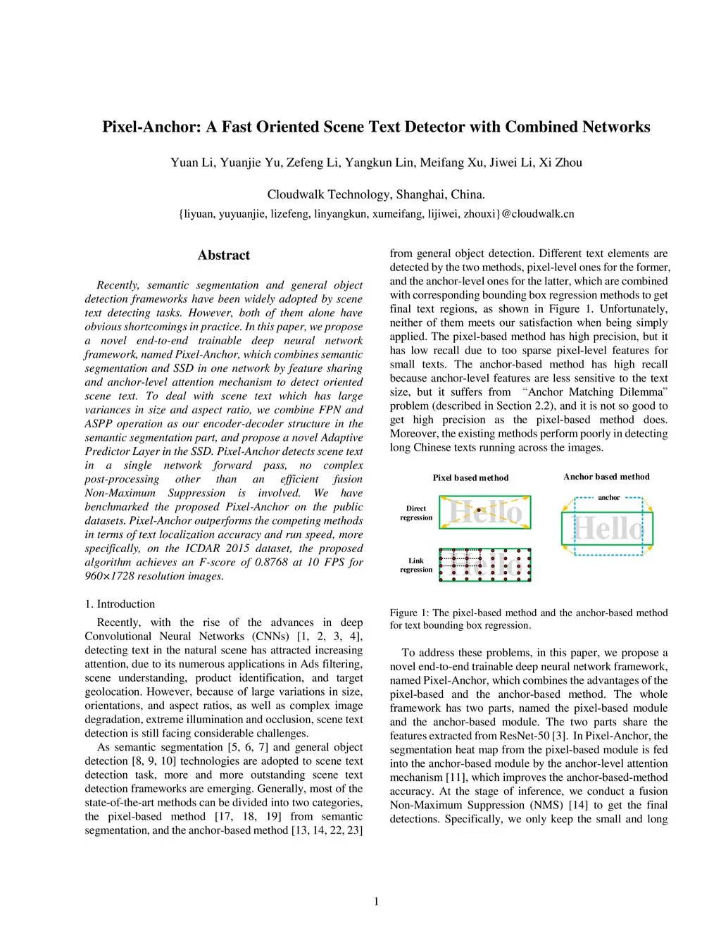 Pixel-Anchor: A Fast Oriented Scene Text Detector with Combined Networks