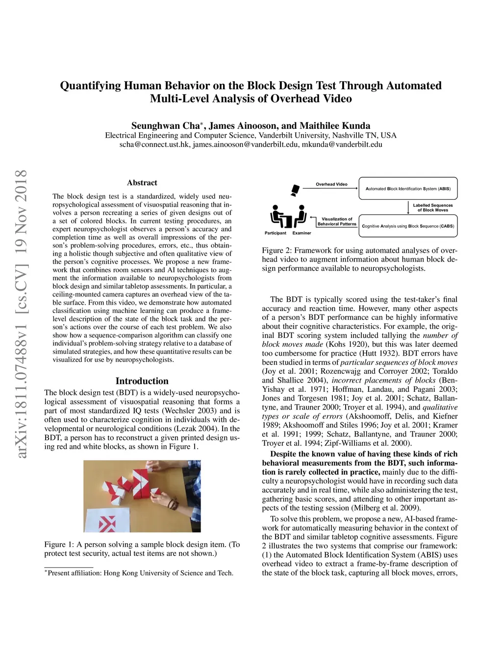 Quantifying Human Behavior on the Block Design Test Through Automated