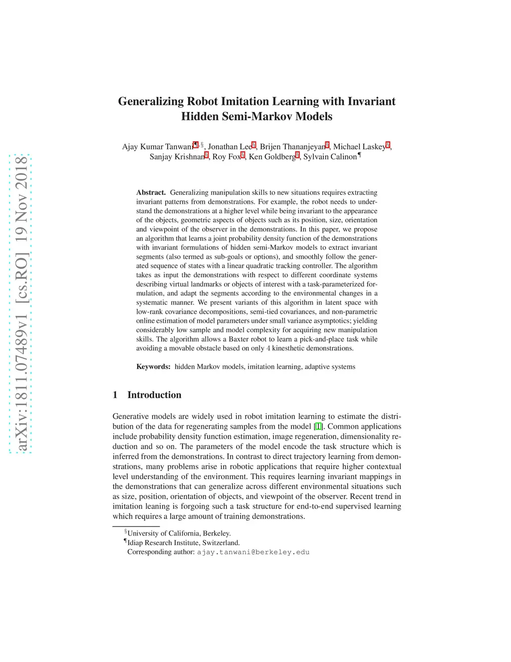Generalizing Robot Imitation Learning with Invariant Hidden Semi-Markov