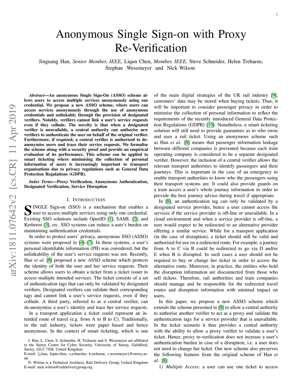 Anonymous Single Sign-on with Proxy Re-Verification