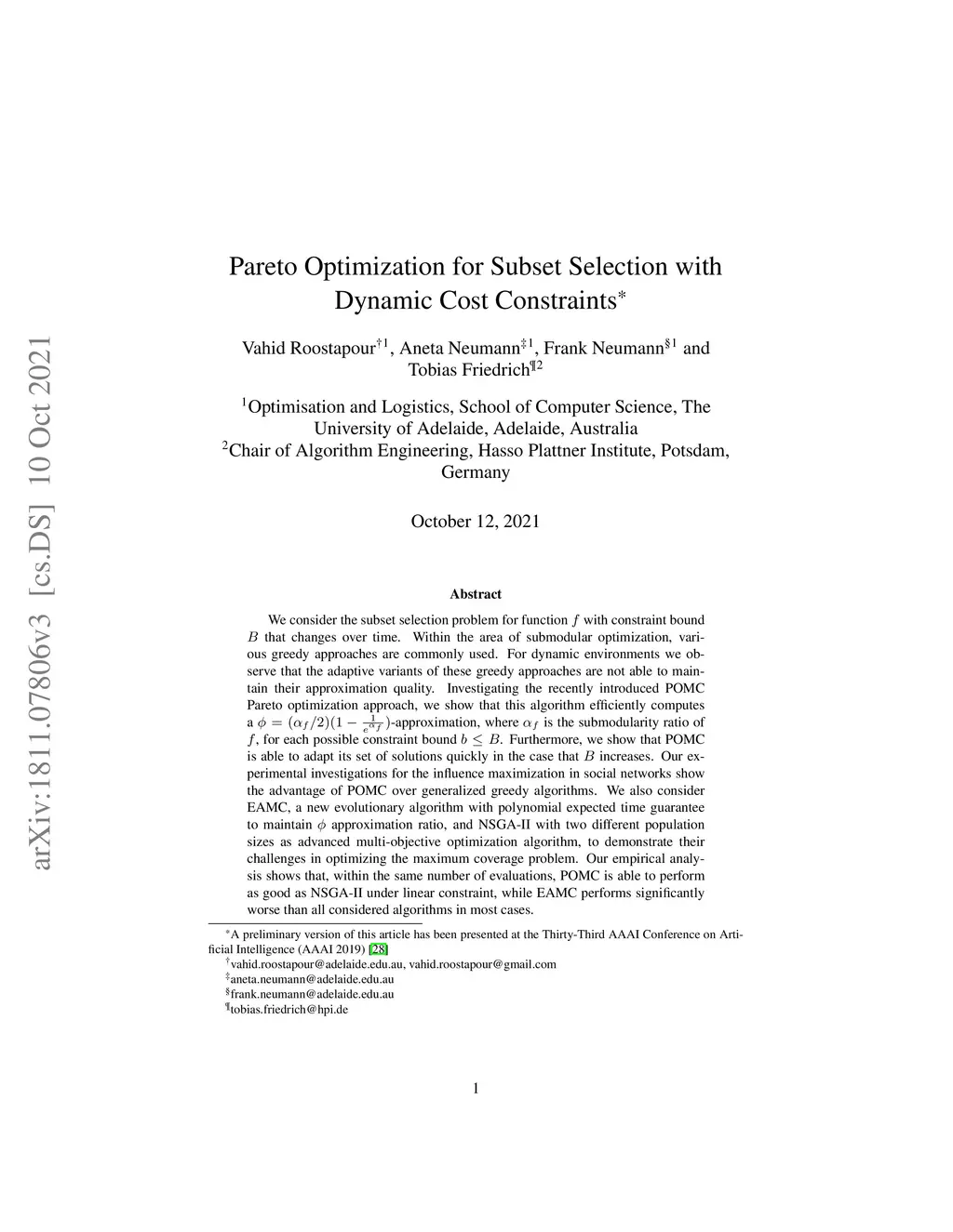 Pareto Optimization for Subset Selection with Dynamic Cost Constraints