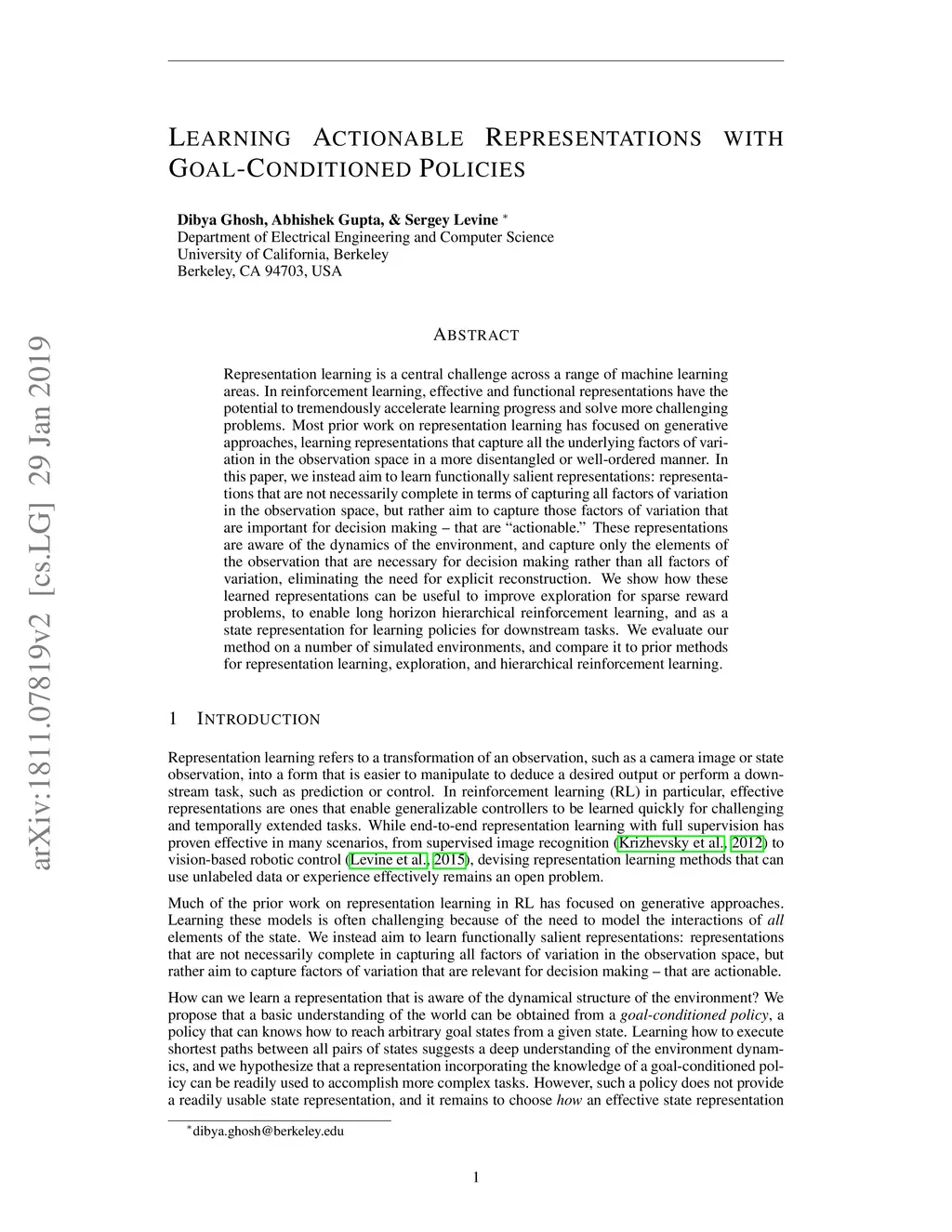 Learning Actionable Representations with Goal-Conditioned Policies